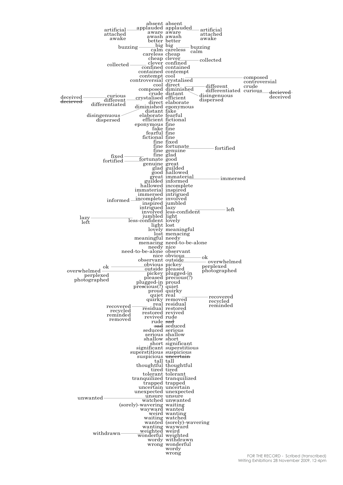 The other set of materials I have been gathering concern practices of appropriation in which the poets work is often less concerned with the generation of new material than with the selection, organising and placing of material in new contexts and constellations, thereby producing new meanings and emphases.