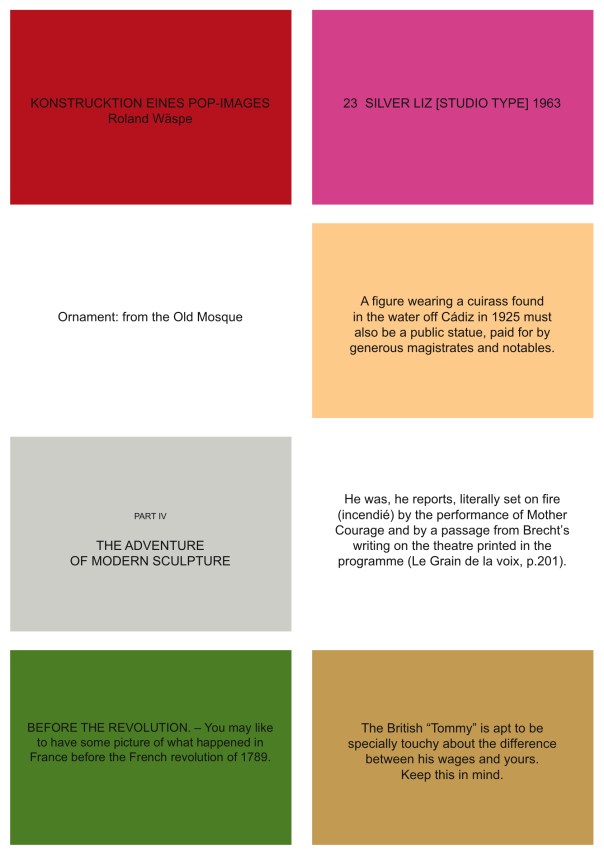 Other components of VerySmallKitchen’s DEMOTIC ARCHIVES OF ART WRITING are (1)Thomas A Clark’s THE GALLERY AND THE BOOK which can be seen here, and (2) Richard Foreman’s ONTOLOGICAL HYSTERIC THEATER: A MANIFESTO which can be seen here.