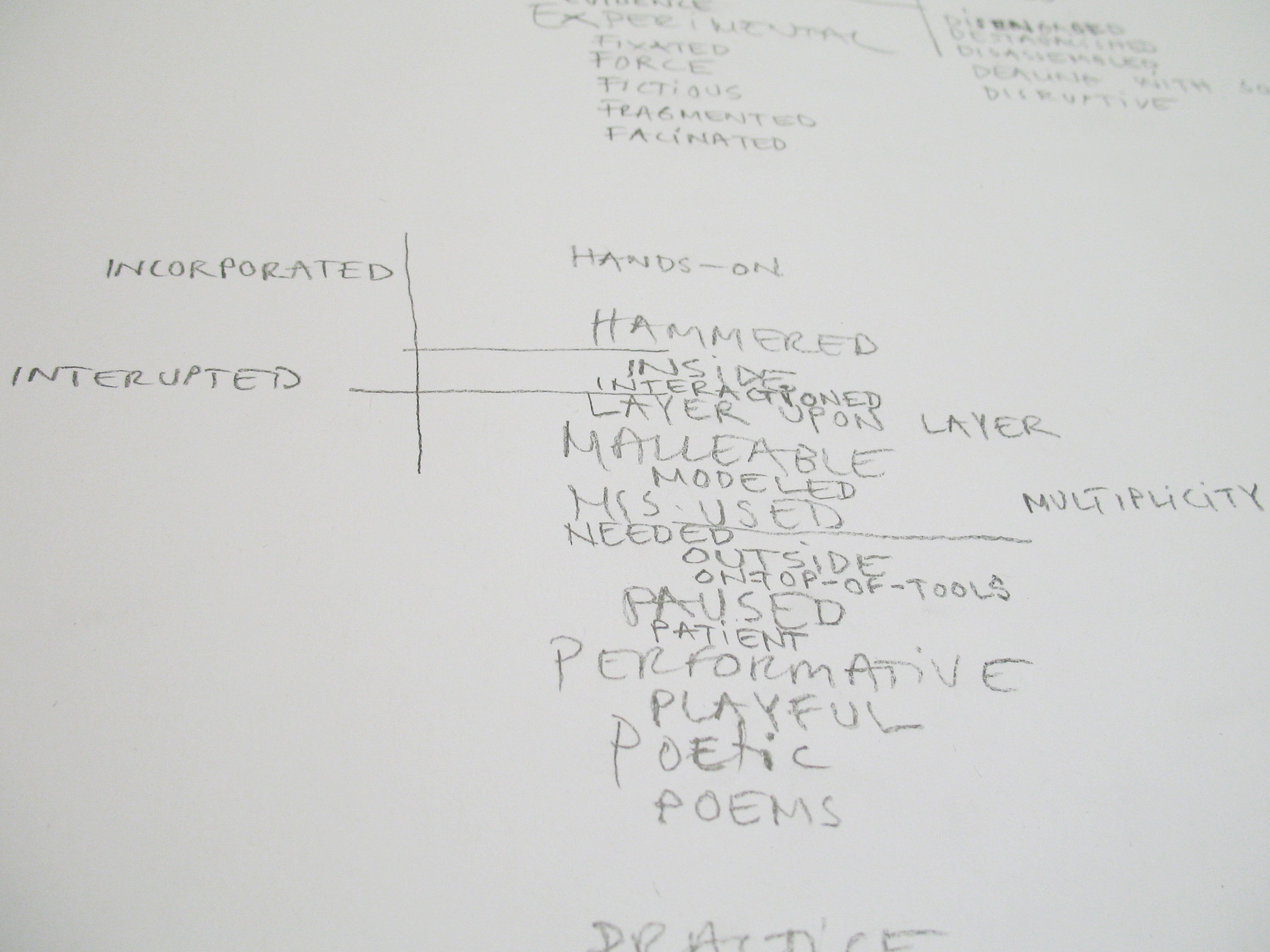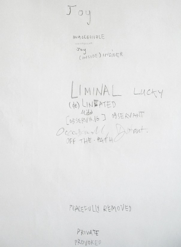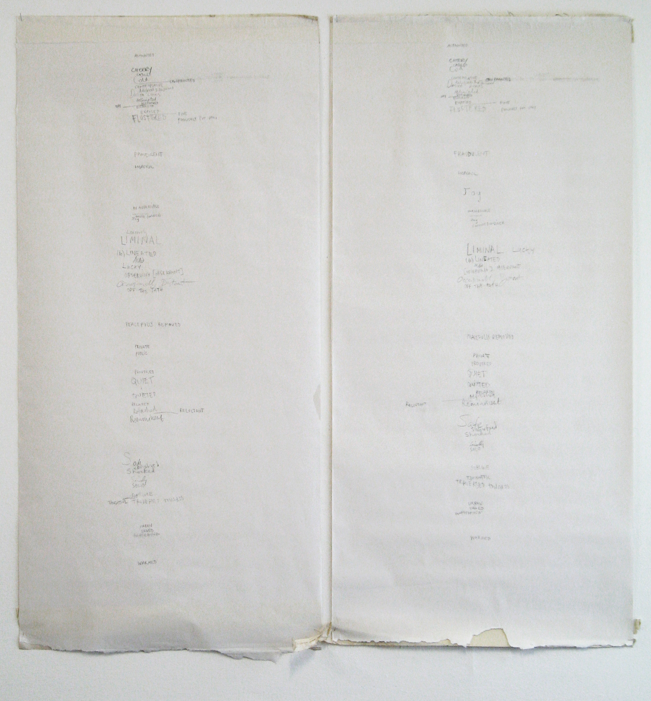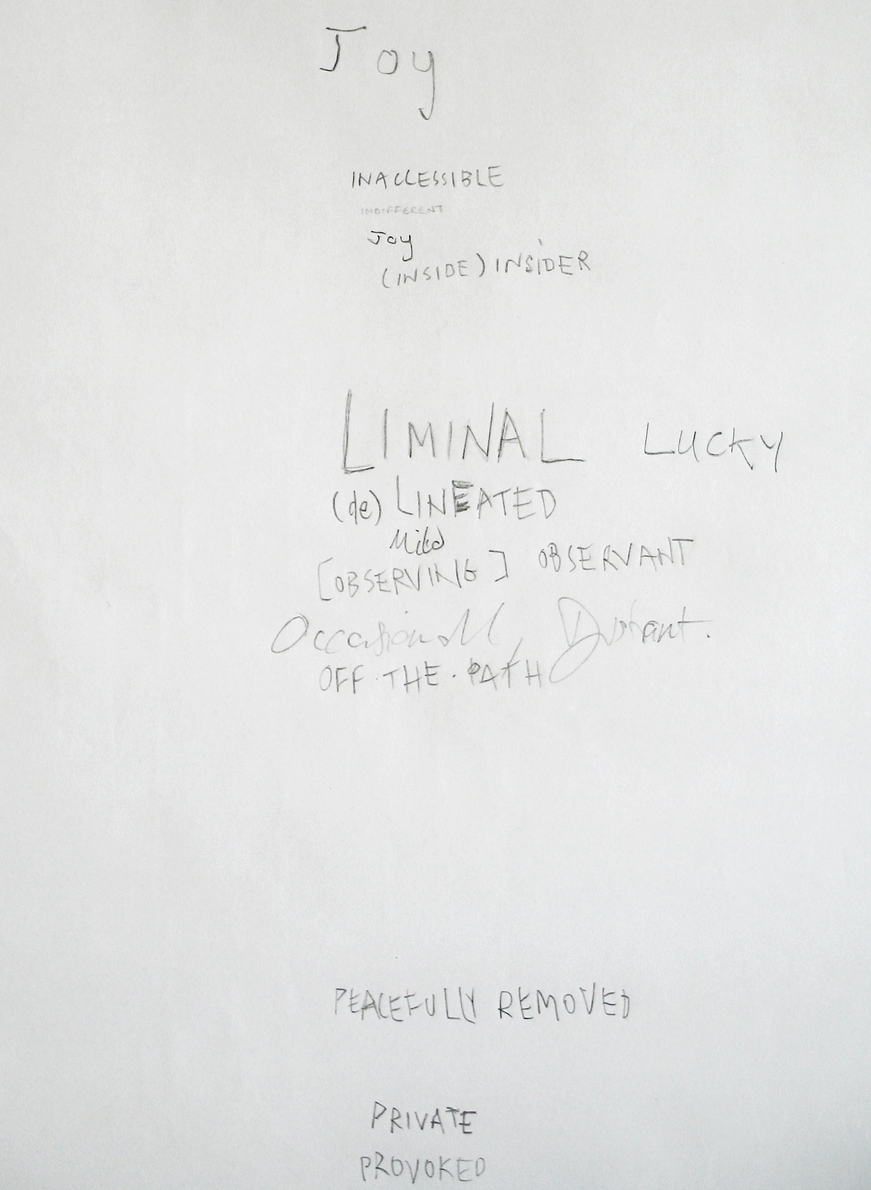 Smithson’s method of writing is unique — where a quickly engineered set of associations begins to build language as you would build buildings, a quick suggestion that “the skyline is a sentence.” Smithson urges “ why not reconstruct one’s inability to see? Let’s give passing shape to the unconsolidated views around a work of art, and develop a type of anti- vision or negative seeing.” Writing is such blindness, I think he meant.