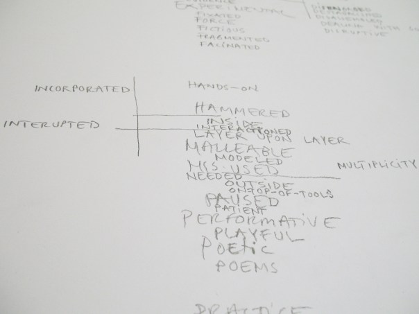 … all of these guys were writing [Smithson, Judd, Carl Andre, Sol LeWitt], words were the ground of the work, even more than the material it was “made of,” and seeing these writings explains a missing link in how we wound up with the poetry and art culture of today. No one who knows the 70s really has to ask where Language poetry comes from. It was part of the work. Language was sculpture and vice versa.