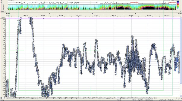 replaying. as i stated before, my task at the centre for integrative genomics was to turn sleep into a kind of poetry: setting out to do this required embracing illegiblity, keeping it intact; to describe the poem assembling the morrow should remain a problem of description also to the reader: to emerge from a video screening of a poem where words crest in and out of various degrees of illegibility, one is forced to confront the limits of their own knowledge as reflected in the (un)readability of words sculpted to the brainwaves of a sleeping subject. raoul hausmann: “we call this process photomontage because it embodied our refusal to play the role of artist. we regarded ourselves as engineers, and our work as construction: we assembled [in french monteur] our work, like a fitter.” to assemble a morrow is to put together the next coming day using a diverse montage: history, technology, biology, poetry, to create the new, to hold it in that space, unwaking, even as it longs to stutter towards the old. sleep, like grammar, is essentially mysterious: the process lies in unravelling (where every line must have an electricity) (every) (half-