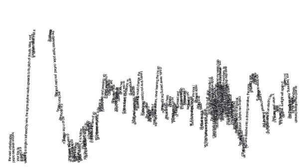 edwards suggests words as a more viable, more economic way of visualizing biophysical space than pixels or lines or any geometric model. words become a powerful semantic interface over something we cannot (as yet) possibly encounter. as william james put it: “the appearance needs the reality in order to exist, but the reality needs the appearance in order to be known.” so much is guessed at by the quality of its surface. to replace brainwaves with words is to inflict upon that wave all the luggage that a sentence can carry: narrative, bias, artifice,