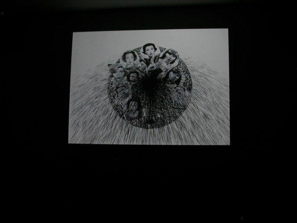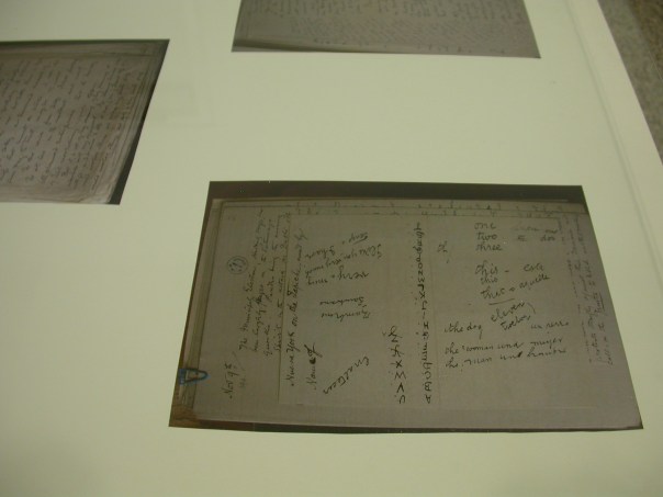 The text is now in multiple places; the springboard-text for the show, in the handout, on the wall, through the earphones, on the blog; it seems to be reproducing itself at an alarming rate. The text is in transit. Who knows where it will go next? And still the author has not been found, ascertained.