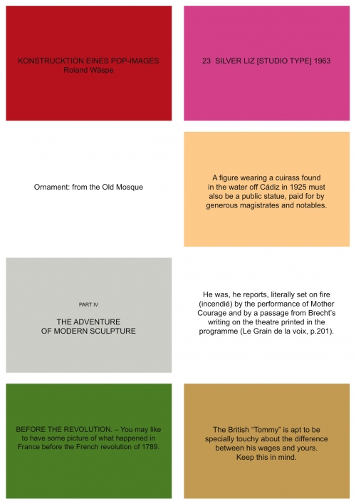 This quote is from an inteview in Retallack’s The Poethical Wager essay collection, although it is copied here from Adam Pendleton’s grey-blue grain, an artist books that appropriates several quotations from the interview as structural foundation for its own page-based gatherings and unfoldings.