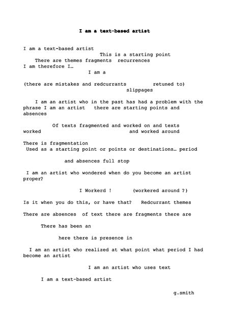 It seemed right, after this, to include Baldwin’s text as the latest installment of the DEMOTIC ARCHIVES OF ART WRITING. I was, however, aware how this text differed from the archives previous gestures of re-publication. Most texts – such as those by Richard Foreman, Thomas A Clark ,and Richard Kostelanetz – have been examples and propositions about certain histories of thought and practice, reclamations of texts and ideas around a broadly considered field of art writing.