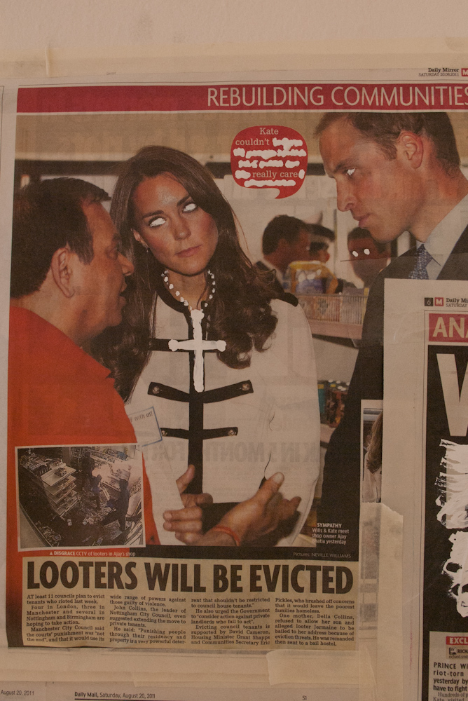 Also, “Newspapers” is right next to René Magritte’s painting of a comb, Ibuprofen, a bed, a feather, and clouds as wallpaper, to indicate a dream. “Personal Values” is the title, which goes nicely with the singeing “family values” codeword in one of your Newspapers’ headlines. In fact, that’s the only curatorial logic I can detect here. To say “Newspaper” is next to a surrealist painting is a way of saying that your piece is often treated in the periphery. Because surrealism, you know, is famous, recognizable, comforting, explanations of the movement make it to high school curriculums.