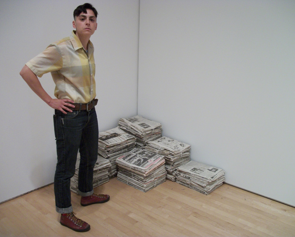 I have stood guard at “Newspapers,” communicating with the sculpture so to speak, which deters, but also attracts visitors because they think I am a docent. Someone even asked me if I was the artist. They were joking. I ended up talking about how “Newspapers” is really a performance of negligence. And I’m not trying to say people don’t look at art, because that wouldn’t be fair, they are in the museum because in some form, they care about art. People come here to look at art, right?