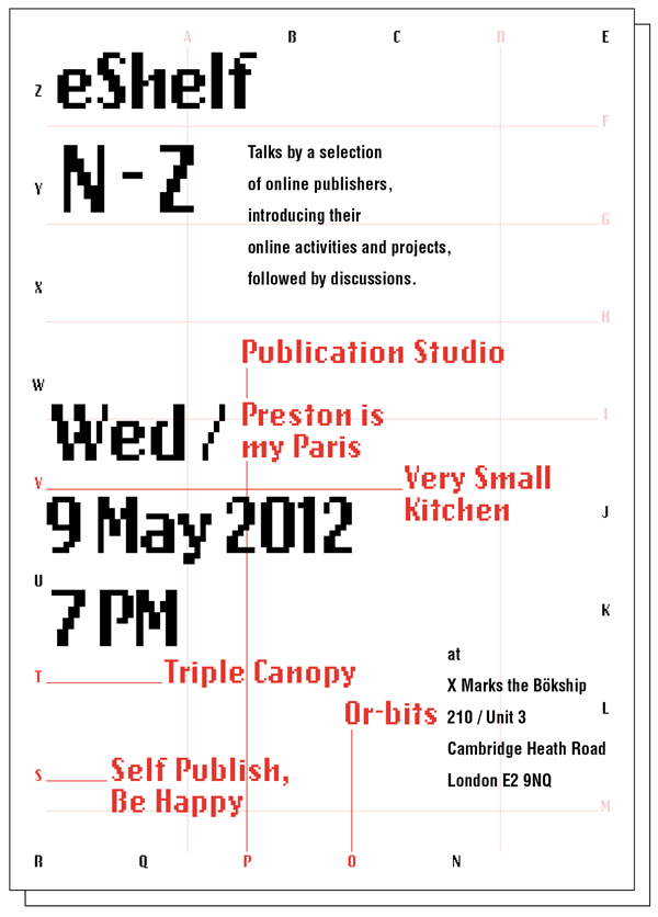 A print edition of this exchange was produced by VerySmallKitchen at X Marks the Bökship as part of Evergreen, March 30th, 2012. Thanks to Eleanor Brown for her assistance, hospitality and printer. See also texts of work from the night by SJ Fowler, seekers of lice, Claire Potter and nick-e melville. A set of “visual translations” by David Kelly is here.