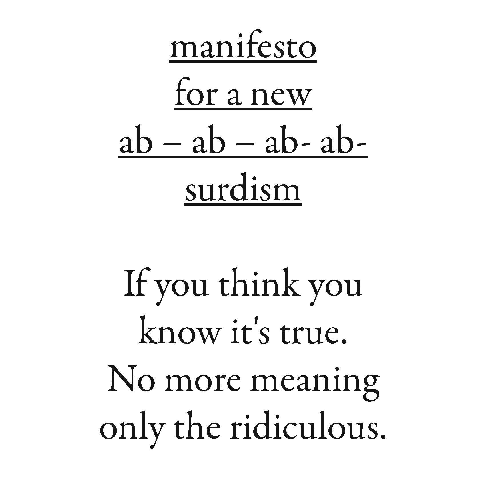 manifesto for a new ab-ab-ab-ab surdism by seekers of lice. Invitation to read aloud accompanied by David Kelly’s MANIFESTO AT NORTH POLE ROAD.