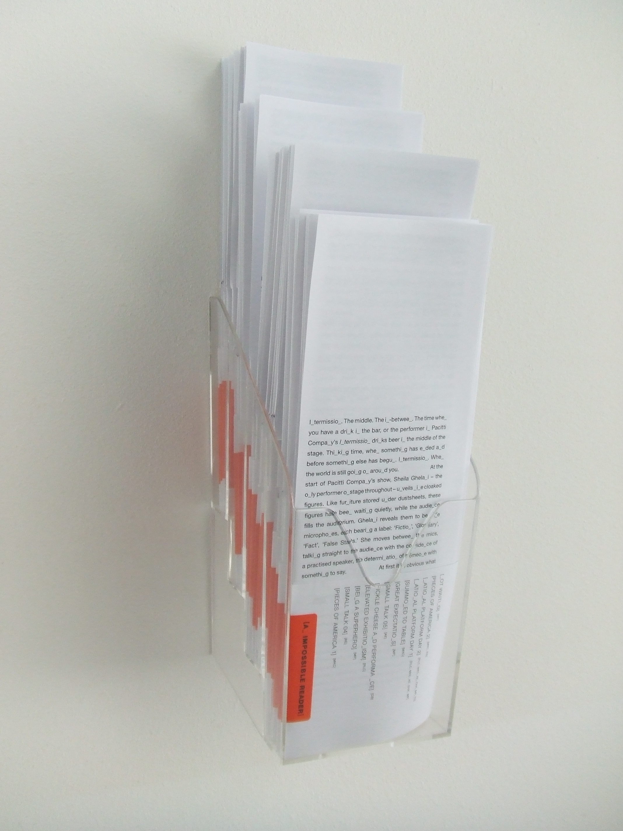 A_ Impossible Reader is incomplete, unbound, personal and portable. It is (not) a record, (not) a document, (not) a marker of absence, (not) a work of art.