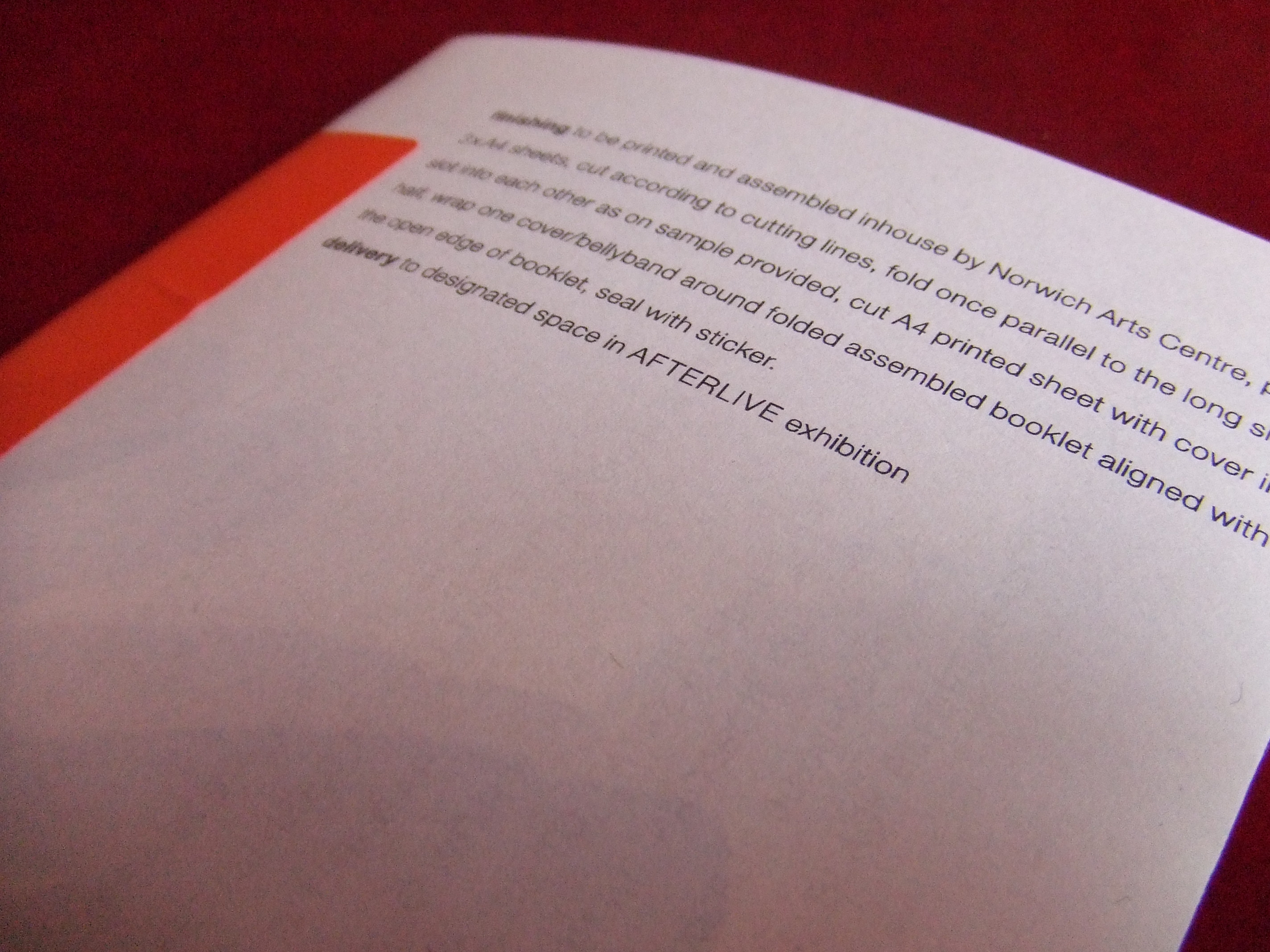 Some work I produced as part of the SPILL: OVERSPILL writing project in 2009, has taken new form as part of  A_ Impossible Reader, a project by Open Dialogues  and Marit Muenzberg, exhibited in After Live, at the Norwich Arts Centre (4 Sep-30 Oct). As Open Dialogues describe the project: